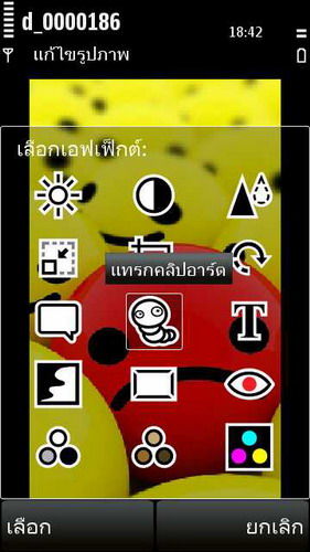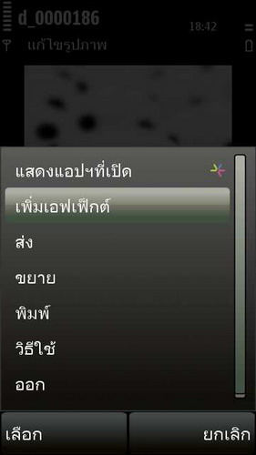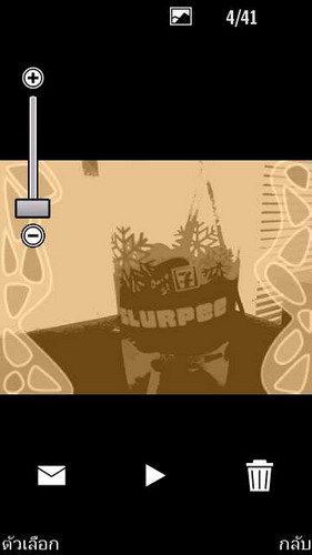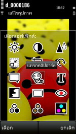 รูปภาพและโปรแกรมตกแต่งภาพ ภาพถ่ายและวีดีโอที่บันทึกจากกล้อง สามารถเข้าชมได้จากเมนูคลังภาพ โดยการชมรูปภาพนั้นสามารถเปิดตัวเลือกเพื่อเรียกฟังก์ชั่นแก้ไข เพื่อตกแต่งรูปภาพได้ โดยมีเอฟเฟ็กต์ให้ใช้ดังนี้ ปรับความสว่าง, ความเข้มแสง, ความคมชัด, ปรับขนาดรูปภาพ, เปลี่ยนอัตราส่วนของภาพ, หมุน, ใส่กรอบคำพูด มีให้เลือก 12 แบบ, แทรกรูปภาพคลิปอาร์ต, แทรกข้อความ, เปลี่ยนโทนสีภาพโปสเตอร์, ใส่กรอบรูปภาพ, ลดจุดตาแดง, เปลี่ยนเป็นภาพขาวดำ, เปลี่ยนเป็นโทนสีน้ำตาล และ เปลี่ยนเป็นโทนสีเนกาทีฟ หลังจากแก้ไขรูปภาพเสร็จแล้ว (หรือเปิดดูโดยไม่แก้ไข) สามารถส่งรูปภาพออกไปทางข้อความ, บลูทูธ, แบ่งปันผ่าน Ovi, Flickr, Vox, OKnotion และ สั่งพิมพ์ภาพได้ทันที