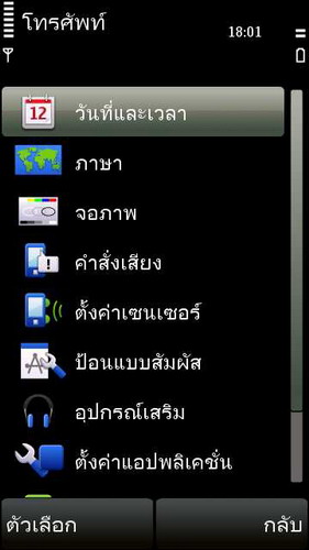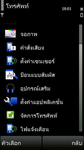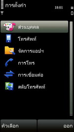 การตั้งค่า - เมนูการตั้งค่าส่วนบุคคล, โทรศัพท์, จัดการแอปฯ, การโทร, การเชื่อมต่อ และ สลับโทรศัพท์