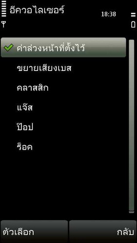 เครื่องเล่นเพลง เครื่องเล่นเพลง สนับสนุนรูปแบบไฟล์ MP3, MP4, AAC, eAAC+ และ WMA แยกประเภทเพลงเป็น ศิลปิน, อัลบั้ม, รายการเล่น, เพลงทั้งหมด, พอดแคสต์, ประเภท, ผู้เรียบเรียง เมื่อเข้าไปในเครื่องเล่นเพลงจะแสดงปกอัลบั้ม (ถ้ามี), ความยาวเพลง, ชื่อเพลง/ศิลปิน, แผงควบคุมเพลง(เล่นเพลงก่อนหน้า, เล่น/พัก, เล่นเพลงถัดไป) สามารถตั้งค่าการเล่นแบบวนซ้ำ หรือ สุ่มรายชื่อ ปรับอีควอไลเซอร์ได้ 7 แบบ คือ ค่าล่วงหน้าที่ตั้งไว้, ขยายเสียงเบส, คลาสสิค, แจ๊ส, ป๊อป และ ร็อค นอกจากนี้ยังตั้งค่าสมดุลเสียง ซ้าย/ขวา, เพิ่มความดัง และ ขยายแถบเสียงสเตอริโอ เลือกรับฟังเสียงผ่านชุดหูฟัง ขนาด 3.5 มิลลิเมตร หรือ ลำโพงที่ด้านข้างของเครื่อง