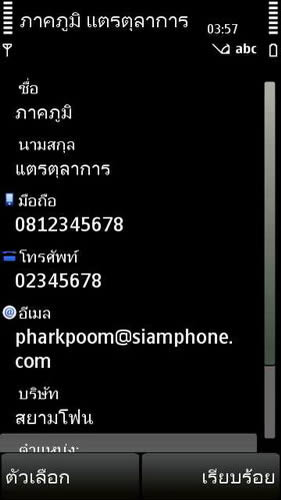การสร้างรายชื่อโดยจัดเก็บไว้ในตัวเครื่อง สามารถใส่ข้อมูลได้หลายรายการ ดังนี้ ชื่อ, นามสกุล, เบอร์มือถือ, เบอร์บ้าน, อีเมล์, บริษัท, ตำแหน่ง, การซิงโครไนซ์ และ สามารถเพิ่มรายละเอียดลงไปได้อีก เช่น คำนำหน้า, ชื่อกลาง, คำต่อท้าย, ชื่อเล่น, มือถือ 3 เบอร์ โทรศัพท์บ้าน 3 เบอร์, อีเมล์ 3, โทรศัพทพ์ติดรถ, แฟ็กซ์ 3 เบอร์ ที่อยู่เว็บ 3 ที่, ที่อยู่ 3 ที่, วันเกิด วันครบรอบ, หมายเหตุ เป็นต้น
