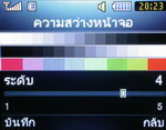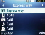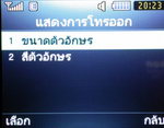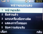 หน้าจอแสดงผลหน้าแรกจะแสดงเครือข่ายซิม, วัน/เวลา ด้านล่างมีแถบเมนูลัดที่สามารถเลื่อนไปเมนูที่ต้องการด้วยการกดปุ่มควบคุมซ้าย-ขวา เมนูหลักแสดงผลใน รูปแบบตาราง (Grid) ผู้ใช้สามารถเข้าถึงแต่ละเมนูด้วยการ กดปุ่มตัวเลขได้ทันที (ปุ่ม 1 ถึง 9) ปุ่ม # และ * แสดงผลรวม 12 เมนูดังต่อไปนี้ ข้อมูลการใช้ - เบอร์ที่โทรล่าสุด, เบอร์ที่ไม่ได้รับสาย, เบอร์ที่โทรออก, เบอร์ที่รับสาย, ข้อความที่ส่งแล้ว, ข้อความที่ได้รับ