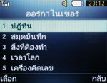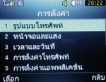 การตั้งค่า - รูปแบบโทรศัพท์, หน้าจอและแสง, เวลาและวันที่, การตั้งค่าโทรศัพท์, สมาร์ทอันล็อก, การตั้งค่าแอปพลิเคชั่น, ระบบป้องกัน, การตั้งค่าเครือข่าย, การตั้งค่า Wizard, การตั้งค่าความจำ, ตั้งค่าใหม่