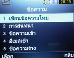 ข้อความ - เขียนข้อความใหม่, การสนทนา, ข้อความเข้า, อีเมล์เข้า, ข้อความร่าง, ข้อความออก, ข้อความที่ส่งแล้ว, แฟ้มส่วนตัว, ข้อความที่ตั้งไว้, ข้อความสนทนา, ข้อความบลูทูธ, การตั้งค่า, สถานะความจำ