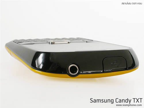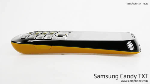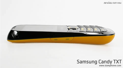 Samsung Candy TXT โทรศัพท์มือถือทรงแท่งพร้อมแผงแป้นพิมพ์ QWERTY ตัวเครื่องวัดความสูงได้ 111.1 มิลลิเมตร กว้าง 58.52 มิลลิเมตร หนา 13.25 มิลลิเมตร ชั่งน้ำหนักรวมแบตเตอรี่ได้ 95 กรัม