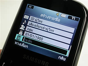 สมุดโทรศัพท์ จัดเก็บรายชื่อลง 1,000 รายชื่อ สร้างรายชื่ออย่างง่ายๆ ได้โดยพิมพ์หลายเลขในหน้าแรก จากนั้นกดทางเลือก > บันทึกในสมุดโทรศัพท์ จะมีให้เราเลือกบันทึก 2 ที่คือ ตัวเครื่อง กับ ซิมการ์ด หากจัดเก็บลงในตัวเครื่อง จะมีรูปแบบให้เลือก 5 แบบ คือ มือถือ, ที่ทำงาน, แฟกซ์, อื่นๆ เมือเลือกแล้วจะสามารถใส่รายละเอียดชื่อ, นามสกุล, มือถือ, บ้าน, ที่ทำงาน, แฟกซ์, อื่นๆ, อีเมล์, ID ผู้โทร, เสียงเรียกเข้าผู้โทร, กลุ่ม, วัดเกิด และจดบันทึกได้