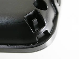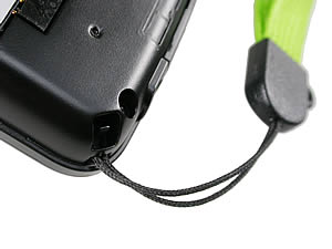 มุมขวาบน มีช่องสำหรับร้อยสายคล้องคอ ผู้ใช้สามารถสอดสายผ่านช่องนี้เข้าไปคล้องกับตัวเครื่องด้านในได้ ดังภาพ