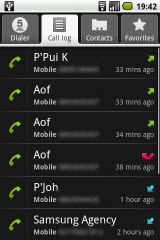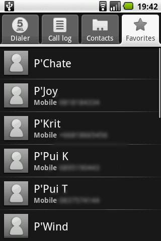 - แถบ Favorites ใช้กำหนดรายชื่อโปรดที่ผู้ใช้ต้องการ และแสดงรายชื่อของผู้ที่โทรบ่อยมากที่สุด