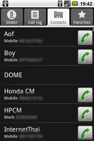Contact & Dialer โปรแกรมสำหรับดูรายชื่อของผู้ติดต่อ ที่บันทึกไว้ในเครื่อง พร้อมฟังค์ชั่นการใช้งานพื้นฐานของโทรศัพท์ที่จำเป็นต้องมี นั่นคือ การรับสาย การโทรออก ... หน้าจอโปรแกรมแบ่งออกเป็น 4 แถบด้วยกัน