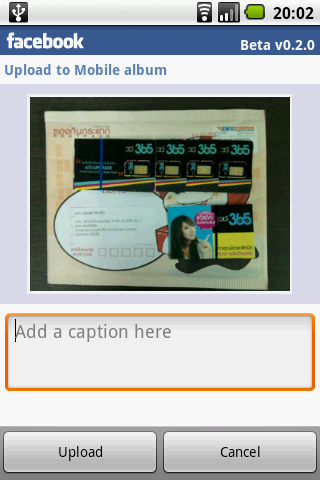 - Take photo สำหรับถ่ายรูปแบบอัพโหลดขึ้นไปเก็บไว้บน facebook