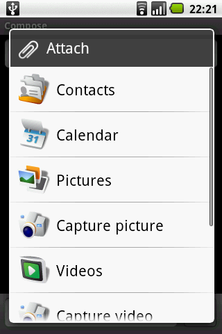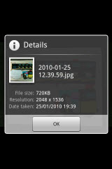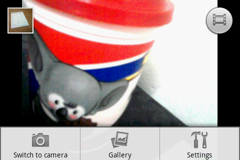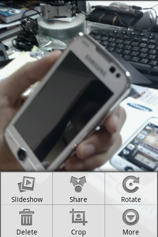 เมื่อถ่่ายภาพหรือบันทึกวีดีโอเสร็จจะมีให้เลือก เข้าชมห้องภาพ เล่นไฟล์วีดีโอนั้น แชร์ไฟล์ไปยัง (Gmail, MMS และ Youtube) หรือ ลบไฟล์นั้น