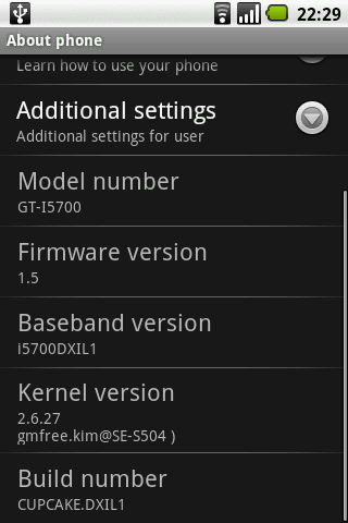 - Baseband version - เวอร์ชั่นที่ใช้ในการพัฒนา