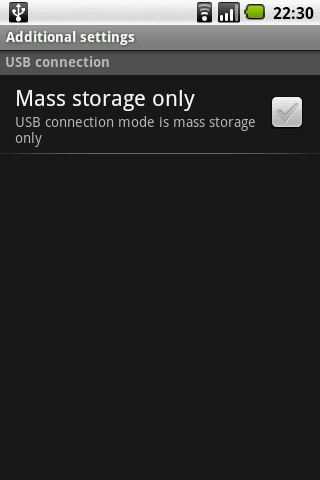 - Mass storage only - แสดงพื้นที่จัดเก็บข้อมูลใน microSD เมื่อเชื่อมต่อกับคอมพิวเตอร์