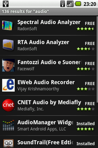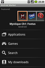 Market เข้าโปรแกรมเพื่อเลือกโหลดแอพพลิเคชั่นต่างๆ เพิ่มเติม เพิ่มความน่าใช้งานให้กับแอนดรอยด์ยิ่งขึ้น โดยภายในจะมีโปรแกรมและเกมส์ต่างๆ ให้เลือกโหลดมากกว่า 31,000 โปรแกรม (จำนวนยังเพิ่มขึ้นเรื่อยๆ ในปัจจุบัน)