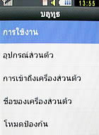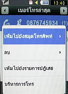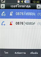 บันทึกข้อมูลการใช้ - บันทึกข้อมูลการใช้สายล่าสุด สามารถเลือกดูตามการจำแนกได้ โดยแบ่งเป็น เบอร์ที่ไม่ได้รับสาย, เบอร์ที่โทรออก และ เบอร์ที่ได้รับ นอกจากนี้ยังสามารถดูเวลาโทร และ ค่าโทรได้ โดยแตะเลือกที่บริหารการโทร