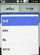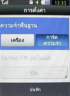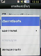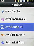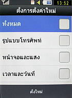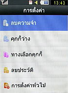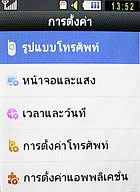 การตั้งค่า - เมนูการตั้งค่า รูปแบบโทรศัพท์ (โปรไฟล์), หน้าจอและแสง, เวลาและวันที่, การตั้งค่าโทรศัพท์, การตั้งค่าแอพพลิเคชั่น, ระบบป้องกัน, การตั้งค่าเครือข่าย, การเชื่อมต่อ PC, การตั้งค่าความจำ และ กลับไปตั้งค่าตามเดิม