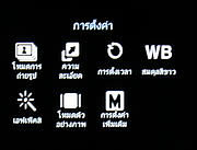 เมนูหลักแสดงผลด้วยรูปภาพไอคอน วางเรียงในรูปแบบตาราง รวม 26 ฟังก์ชั่น แบ่งออกเป็น 3 หน้า เลื่อนเปลี่ยนแต่ละหน้าด้วยปลายนิ้ว แตะที่จอแสดงผลแล้วปัดไปทางซ้ายหรือขวา เลือกฟังก์ชั่นหรือเมนูที่ต้องการโดยแตะที่รูปไอคอน
