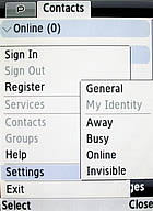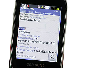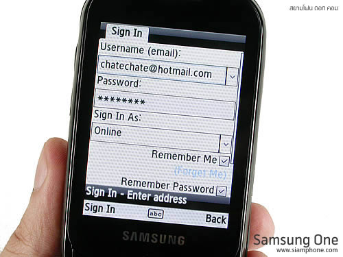 สนทนารูปแบบแชท การสนทนารูปแบบแชทหรือ Instant Messaging ให้เข้าไปที่เมนู Messenger จากนั้นระบบจะเปิดโปรแกรม Palringo ขึ้นมา ซึ่งเป็นโปรแกรม ในรูปแบบจาวา รองรับการใช้งาน Gtalk , AIM , ICQ การใช้งานครั้งแรกให้เปิด Menu ขึ้นมา เข้าไปที่ Register จากนั้นกรอกชื่ออีเมล์กับรหัส เสร็จแล้วแตะที่ Send จะเข้าสู่การ Sign In ให้กรอกชื่ออีเมล์กับรหัสอีกครั้งจะเข้าสู่การ Log In อย่างสมบูรณ์