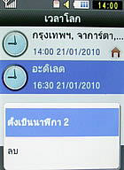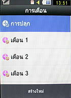 การเตือน - นาฬิกาปลุก ตั้งเตือนได้หลายรายการ สามารถใส่ชื่อการเตือน, กำหนดเวลา, เลือกรูปแบบการเตือน, เสียงเตือน และ ปรับความดัง