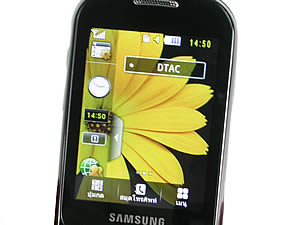 จอแสดงผล TFT-LCD 262,144 สี ระบบสัมผัสแบบ Capacitive ความละเอียด 240 x 320 พิกเซล วัดความกว้างได้ 7.1 เซนติเมตร รูปแบบการแสดงผล TouchWiz พร้อม Widget บนหน้าจอหลัก