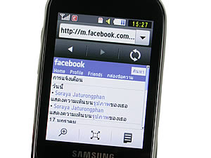 อัพเดตข้อมูลผ่านเครือข่ายสังคมออนไลน์ ทุกวันนี้บริการจากเครือข่ายสังคมออนไลน์ (Social Network) กำลังได้รับความนิยมจากผู้ใช้งานอินเตอร์เน็ตเป็นจำนวนมาก Samsung One ก็ไม่พลาดที่จะนำแอปพลิเคชั่นเสริมพิเศษเหล่านี้มาใส่ไว้ในโทรศัพท์มือถือ ให้ลูกค้าได้ใช้สอยอย่างสะดวก โดยรองรับบริการ MySpace, Facebook, Flickr, Photobucket, Picasa และ Friendster รวมอยู่ในเมนูคอมมิวนิตี้ เมื่อเลือกใช้บริการใด ก็จะเข้าสู่เว็บไซต์ของบริการนั้น ในรูปแบบเว็บไซต์ที่จัดทำขึ้นเพื่อใช้งานบนโทรศัพท์มือถือโดยเฉพาะ