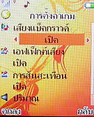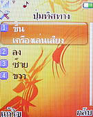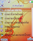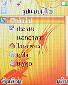 เมนูหลัก แสดงผลด้วยรูปภาพไอคอน จัดวางในรูปแบบตารางรวม 9 ฟังก์ชั่น ปรับเปลี่ยนธีม ได้ 3 สี คือ สีส้ม, สีน้ำเงิน, สีเทา ตั้งค่าการเปลี่ยนแปลงได้ในเมนู การตั้งค่า > ตั้งค่าโทรศัพท์ > ธีม