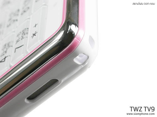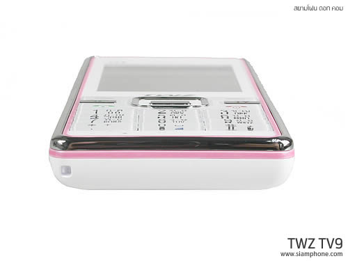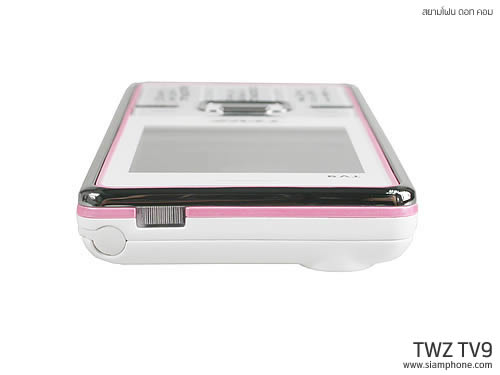 TWZ TV9 ออกแบบมาในรูปทรงแท่ง แต่งขอบรอบต้วเครื่องด้วยเส้นสีสดใสขนาบข้างกรอบโครเมี่ยมสะท้อนเงา วัดความสูงได้ 112.03 มิลลิเมตร กว้าง 49.22 มิลลิเมตร หนา 12.25 มิลลิเมตร ชั่งน้ำหนักรวมแบตเตอรี่ได้ 87 กรัม