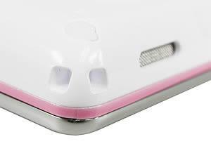 ด้านซ้าย - มีช่องเชื่อมต่ออุปกรณ์ภายนอก MiniUSB (สายชาร์จแบตเตอรี่/สายเคเบิ้ล USB/ชุดหูฟัง) ถัดมาเป็นช่องลำโพงเสียงด้านข้าง