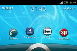 นอกจากนี้ยังมีปุ่มทางลัดเข้าใช้งาน Facebook โดยเฉพาะ จัดวางอยู่ทางด้านล่างสุด และเยื้องขึ้นไปทางซ้ายมีปุ่มกล้องถ่ายรูป