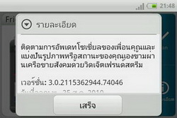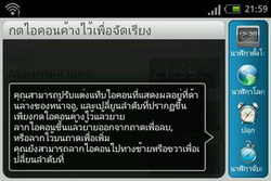 แถบแสดงสถานะต่างๆ ด้านบนจอแสดงผลซ่อนหน้าต่างแสดงรายการแจ้งเตือนอยู่ เมื่อใช้นิ้วแตะตรงแถบด้านบนแล้วลากลงมาข้างล่าง หรือกดปุ่มเมนู แล้วเลือกแจ้งเตือน จะปรากฏหน้าต่างที่ซ่อนอยู่ แสดงชื่อเครือข่าย และรายการแจ้งเตือนต่างๆ เช่น รายการดาวน์โหลด, สายโทรเข้าไม่ได้รับ, ข้อความเข้า, การเชื่อมต่อ USB เป็นต้น