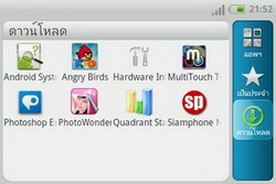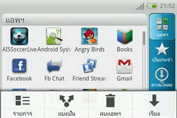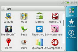 หน้าแอพพลิเคชั่นหลัก แสดงรูปภาพไอคอนพร้อมชื่อกำกับ และมีแถบไอคอนทางขวามือแบ่งหน้าแสดงผลแอพฯ ตามการจัดกลุ่ม แอพฯ ทั้งหมด, เป็นประจำ และดาวน์โหลด เมื่อกดปุ่มเมนูสามารถ จัดเรียงได้ 2 รูปแบบ คือแบบตาราง หรือแบบรายการ แบ่งปันแอพฯ ผ่านหลายช่องทาง, ลบแอพฯ และเรียงแอพฯ ตามตัวอักษร, วันที่