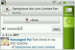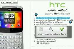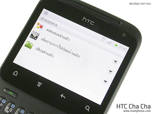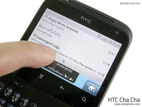 ขอขอบคุณ : บริษัท เอชทีซี (ไทยแลนด์) จำกัด ข้อมูลผู้ใช้ ร่วมแสดงความเห็นกับ HTC ChaCha แคตตาล็อกตัวเครื่อง : http://www.siamphone.com/spec/htc/chacha.htm