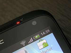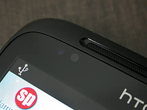 ด้านหน้า ส่วนบนมีลำโพงเสียงสนทนา ภายในซ่อนไฟ LED แสดงสถานะ เยื้องลงมาทางขวามีเลนส์กล้องหน้า VGA และถัดไปทางซ้ายซ่อน Proximity Sensor ตรวจวัดระยะห่างตัวเครื่องกับใบหน้าเพื่อปิดแสงหน้าจอขณะสนทนา และ Light Sensor วัดแสงโดยรอบเพื่อปรับความสว่างจอแสดงผล