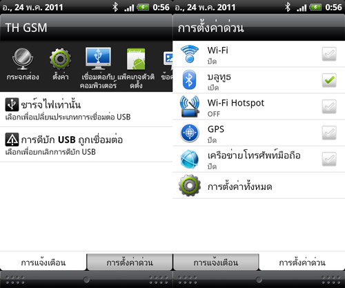 ใช้นิ้วแตะแล้วลากจากส่วนบนสุดของหน้าจอลงมาเพื่อเปิดดูหน้า Notification โดยจะเป็นการขยายเพื่อแสดงรายละเอียดของไอคอนการแจ้งเตือนต่างๆ ซึ่งแสดงอยู่บนแทนการแจ้งเตือนด้านบนสุดของจอ ในกรณีที่เปิดใช้งานแอพพลิเคชั่นปกติ (หากเปิดใช้งานแอพฯ แบบเต็มจอจะไม่สามารถเปิดดูได้) ความพิเศษที่เพิ่มเข้ามาใหม่ใน HTC Desire S (HTC thailand) จะมีการเพิ่มฟังก์ชั่นลงไปในหน้าแจ้งเตือน โดยแบ่งการแจ้งเตือนออกเป็นหมวดหมู่ แสดงไอคอนแอพฯ ที่เคยเปิดใช้งาน และการตั้งค่าด่วนสำหรับปรับแต่งการใช้งานตัวเครื่อง