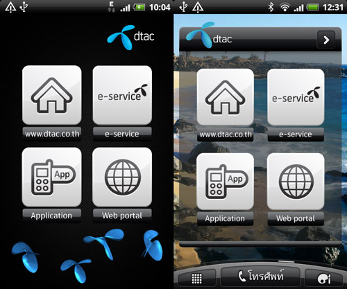 แอพพลิเคชั่น Dtac แอพฯ พิเศษเฉพาะลูกค้าที่ใช้ซิม Dtac เปิดเครื่องครั้งแรก เป็นแอพฯ ท่า เพื่อเข้าสู่บริการต่างๆ จาก DTAC ซึ่งจะมีแสดงเป็น Widget บนหน้าจอหลักเช่นกัน