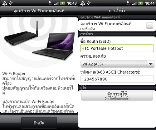Wi-Fi Hotspot แอพพลิเคชั่นสร้างจุดเชื่อมต่อ สำหรับแบ่งปันอินเทอร์เน็ตเครือข่ายที่เครื่องเชื่อมต่ออยู่ไปให้อุปกรณ์อื่นๆ ร่วมใช้ ผ่านสัญญาณเครื่อข่ายไร้สายส่วนตัว ซึ่งผู้ใช้สามารถกำหนดรหัสผ่านของจุดเชื่อมต่อที่เปิดใช้งานนี้ได้
