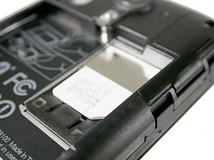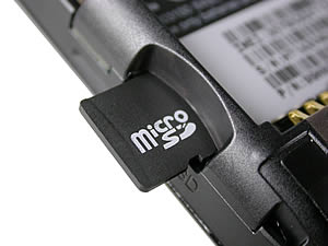 ภายในด้านหลังมีช่องวางแบตเตอรี่ ขนาดความจุ 1230 mAh ด้านซ้ายข้างตัวเครื่องมีช่องเสียบการ์ด MicroSD และภายใต้ช่องวางแบตเตอรี่มีช่องเสียบซิมการ์ดวางอยู่