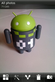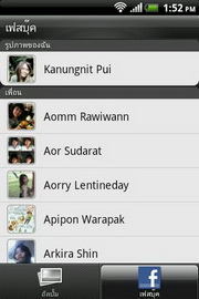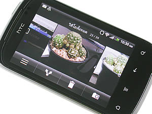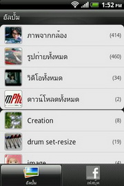 อัลบั้มภาพ จัดกลุ่มแสดงรูปภาพ และไฟล์วีดีโอที่จัดเก็บอยู่ในการ์ดความจำ MicroSD และค้นหาจากอัลบั้มของรายชื่อเพื่อนๆ ใน Facebook สำหรับรูปภาพในอัลบั้มโทรศัพท์ จัดกลุ่มตามแฟ้มที่เก็บไว้ แบ่งไฟล์รูปภาพ และวีดีโอออกจากกัน โดยสามารถซ่อน/แสดงอัลบั้มที่เลือกได้ เมื่อแตะเข้าไปที่แฟ้ม หน้าจอแสดงรูปภาพขนาดย่อทั้งหมด ให้เลือกแตะเข้าไปดูภาพขนาดใหญ่ขึ้น เปลี่ยนมุมมองในแนวตั้ง และแนวนอนอัตโนมัติตามการหมุนวางครื่อง รองรับการย่อ/ขยายภาพแบบมัลติทัช เปลี่ยนไปดูภาพอื่นๆ โดยเลื่อนภาพไปทางซ้าย/ขวา หรือเลือกแสดงภาพในรูปแบบสไลด์โชว์ และกำหนดรูปภาพตั้งเป็นรายการโปรด, วอลล์เปเปอร์, ไอคอนรายชื่อ