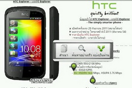ขอขอบคุณ : บริษัท เอชทีซี (ไทยแลนด์) จำกัด ข้อมูลผู้ใช้ ร่วมแสดงความเห็นกับ HTC Explorer แคตตาล็อกตัวเครื่อง : http://www.siamphone.com/spec/htc/explorer.htm