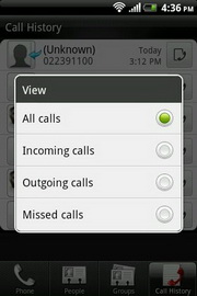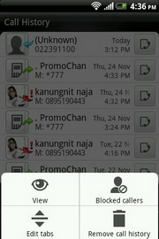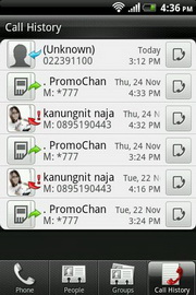 Call History - แสดงรายการประวัติการโทร พร้อมจัดแบ่งหน้าแสดงแผงปุ่มกดโทรศัพท์, รายชื่อ และรายชื่อแบบกลุ่ม