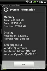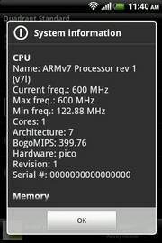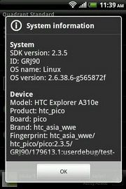 HTC Explorer ทำงานบนระบบปฏิบัติการแอนดรอยด์ 2.3.5 ใช้หน่วยประมวลผล ARMv7 Processor rev 1 (v7l) ความเร็วสูงสุด 600 MHz, RAM 512 MB