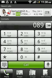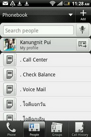 Phone - แสดงแผงปุ่มกดตัวเลขสำหรับโทรออก พร้อมแสดงประวัติการโทร และจัดแบ่งหน้าแสดงรายชื่อ, รายชื่อกลุ่ม, ประวัติการโทร