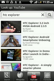 Voice Search - ค้นหาข้อมูลต่างๆ โดยใช้คำสั่งเสียงในการค้นหา และสั่งการทำงานแอพพลิเคชั่นต่างๆ Weather - แสดงสภาพอากาศประจำวัน และล่วงหน้าอีก 4 วัน ณ ตำแหน่งเืมืองที่ได้ตั้งค่าไว้