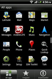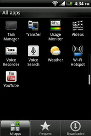 หน้าแอพพลิเคชั่นหลัก แสดงผลด้วยรูปภาพไอคอนพร้อมชื่อกำกับ จัดเรียงได้ 2 รูปแบบ คือแบบตาราง หรือแบบรายการ ใช้นิ้วเลื่อนบนหน้าจอขึ้น/ลง เพื่อเปลี่ยนไปดูแอพฯ ในส่วนที่เหลือ ด้านล่างจัดแบ่งหน้าให้เลือกแสดงแอพฯ ตามการจัดกลุ่ม แอพฯ ทั้งหมด, ที่เปิดใช้เป็นประจำ และดาวน์โหลด รวมทั้งสามารถแบ่งปันแอพพลิเคชั่นผ่านทางช่องทางต่างๆ ลบแอพฯ เรียงลำดับตามตัวอักษรขึ้นต้น หรือที่ใช้งานล่าสุดได้ รวมทั้งสามารถจัดเรียงหน้าใหม่ได้โดยแตะไอคอนที่จัดกลุ่มค้างไว้ และลากไปวางตำแหน่งใหม่แทน (โดยสามารถย้ายไอคอนที่แถบด้านล่างในหน้าเมนูอื่นๆ ได้เช่นกัน)
