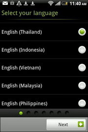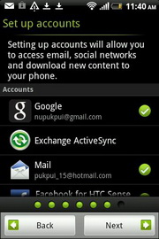 Setup - ส่วนแนะนำการตั้งค่าโทรศัพท์ เริ่มจากการตั้งค่าภาษาของตัวเครื่อง ตั้งค่าการเชื่อมต่ออินเทอร์เน็ต ตั้งค่าเครือข่าย Wi-Fi ใช้แหล่งที่ตั้งของ Google ส่งแจ้งเตือนถึง HTC ตั้งค่าบัญชีอีเมล และโอนถ่ายข้อมูล