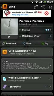 SoundHound แอพที่มาพร้อมเครื่อง ช่วยในการค้นหาเพลงได้รวดเร็วทันใจ ฟังแค่ช่วงสั้นๆ ของเพลงมันจะช่วยคุณค้นหาชื่อเพลง ชื่อศิลปิน เนื้อเพลง รวมทั้ง Link ไปยัง Youtube ให้คุณเปิดฟังได้ทันที ไม่ใช่แค่หาจากเพลงต้นฉบับเท่านั้น แอพนี้ยังสามารถหาเพลงจากเสียงร้อง หรือฮัมทำนองได้ด้วย
