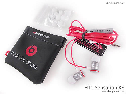 ชุดหูฟังจาก Beats Audio เป็นชุดหูฟังแบบ In Ear มาพร้อมกับซองพกพาจาก Beats by Dr. Dre มียางให้ปรับเปลี่ยนขนาด 5 ขนาด ตัวสายลักษณะกลม สีแดง พร้อมปุ่มควบคุมเครื่องเล่นเพลง 3 ปุ่ม คือปุ่มเลือกเพลงก่อนหน้า, ปุ่มเล่น/หยุดเพลง (รับ/วางสายโทรศัพท์), ปุ่มเล่นเพลงถัดไป และรูไมโครโฟน