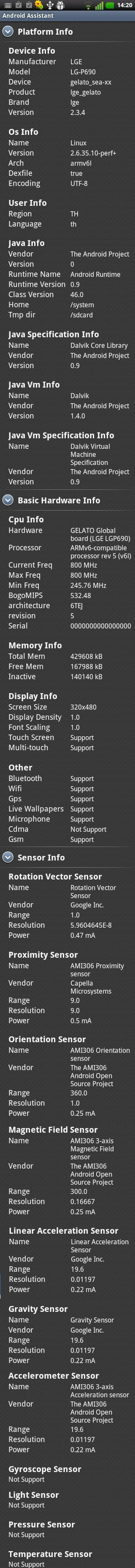 - แสดงรายละเอียดตัวเครื่องผ่าน Android Assistant - - คลิ้กที่รูปเพื่อดูรายละเอียดทั้งหมด - เว็บเบราว์เซอร์ เชื่อมต่ออินเตอร์เน็ตได้หลากหลายช่องทางผ่าน 3G, Wi-Fi, EDGE, GPRS เมื่อเข้าหน้าหลักแล้ว จะแสดงรายละเอียดช่องค้นหาสำหรับใส่ชื่อเว็บ หรือสื่งที่ต้องการค้นหาด้านบน ถัดไปเป็นช่องบุ๊คมาร์ค เก็บเพจที่เราบันทึกไว้ในเครื่อง ถัดลงมาเป็นหน้าย่อยเว็บที่พึ่งเข้ามา 9 หน้า ส่วนด้านล่างเป็นเครื่องมือแสดงการแสดงผลก่อนหน้า, ถัดไป, จำนวนเว็บที่เปิด, เปิดหน้าใหม่ และตั้งค่าเว็บ