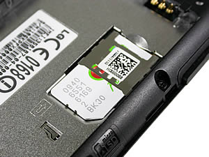 ถอดแบตเตอรี่โดยใช้นิ้วงัดตรงร่องด้านล่าง ภายใต้ช่องวางแบตเตอร์รี่จะพบช่องเสียบซิมการ์ดอยู่