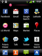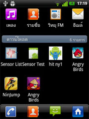 การเข้าสู่หน้าเมนูแอพพลิเคชั่นหลักทำได้ด้วยการสัมผัสหน้าจอที่ปุ่มลูกเต๋า 4 แต้มทางด้านซ้ายมือ โดยจะแสดงรูปภาพไอคอนพร้อมชื่อกำกับ แบ่งหมวดหมู่ของแอพพลิเคชั่นตามการใช้งาน และแยกแอพพลิเคชั่นที่ทำการดาวน์โหลดเพิ่มเติมไว้ รูปแบบการจัดเรียงแอพพลิเคชั่นสามารถปรับแต่งการใช้งานได้ 3 แบบ คือแนวนอน, แนวตั้ง และแบบรายการ Browser - บราว์เซอร์ท่องอินเทอร์เน็ต
