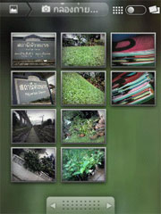 บริเวณหน้า Home สามารถเรียกดูสถานะต่างๆ ได้จากการวางนิ้วจากบนสุดของเครื่องแล้วลากลง แถบสถานะจะแสดง เสียงเรียกเข้า, Wi-Fi (เปิด/ปิด), Bluetooth (เปิด/ปิด), GPS (เปิด/ปิด) และการใช้ข้อมูล Data (เปิด/ปิด) ถัดลงมาจะแสดงสถานะของเครื่องเล่นเพลง, เครือข่ายโทรศัพท์ และการแจ้งเตือนการทำงานต่างๆ ภายในเครื่อง คลังภาพ แสดงภาพ และวีดีโอทั้งหมดภายในเครื่อง โดยแบ่งออกเป็นหมวดหมู่ เมื่อเลือกรูปภาพที่ต้องการแสดงแล้วสามารถที่จะดูได้ทั้งแนวตั้ง และแนวนอน สามารถเลือกซูมภาพผ่านเครื่องมือด้านล่าง (รูปแว่นขยาย) หรือผ่านระบบ Pinch-to-zoom เล่นไฟล์เป็นภาพสไลด์ และเมนูสำหรับแชร์ภาพ (ผ่านโปรแกรมต่างๆ เช่น บลูทูธ/อีเมล์/Facebook เป็นต้น), ลบภาพ และตกแต่งรูปภาพ หากต้องการสลับไปใช้โปรแกรมกล้องถ่ายรูปทำได้โดยสัมผัสที่หน้าจอทางขวาด้านบน (รูปกล้องถ่ายรูป)